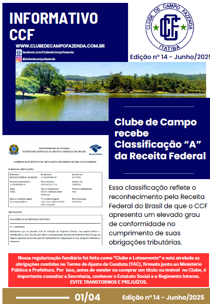 2) Via e-mail enviado para a secretaria do clube (secretaria@clubedecampofazenda.com.br);