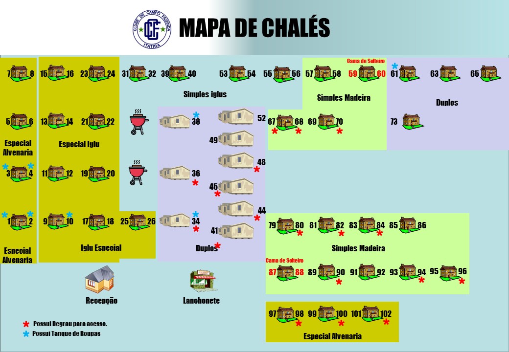 - O uso dos Chalés destinam-se a associados adimpletes e seus convidados