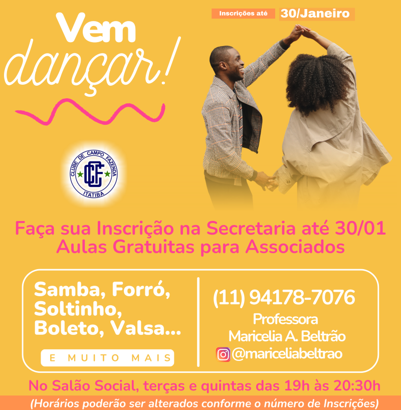 Aulas de Dança para Associados - As terças e quintas das 19h às 20:30h